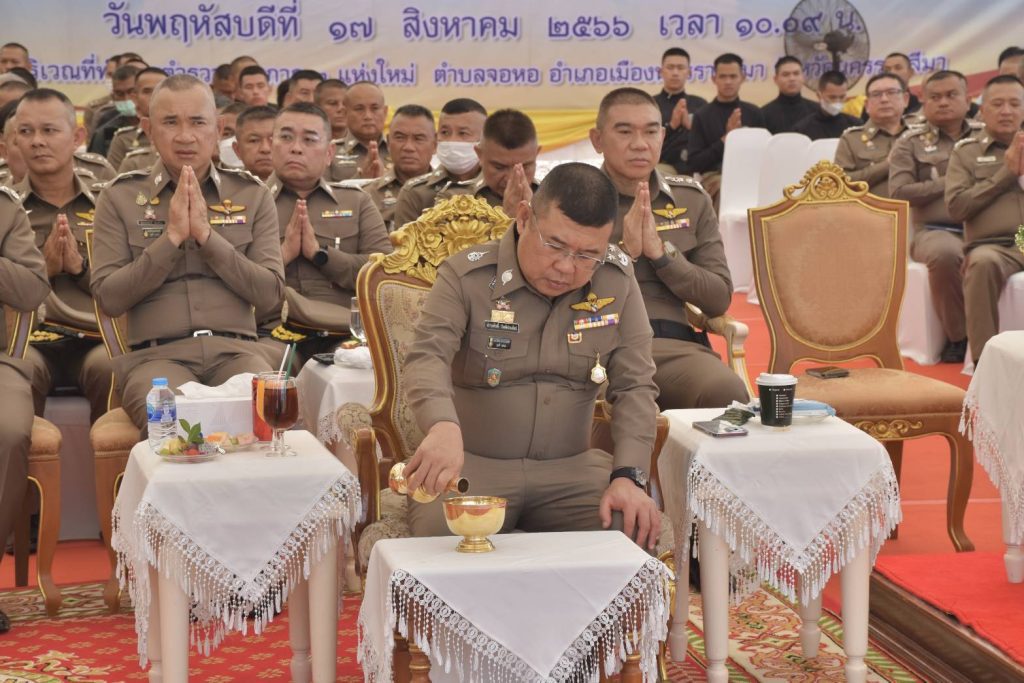 วันที่ (17 ส.ค.66) เวลา 09.00 น. พล.ต.อ.ดำรงศักดิ์ กิตติประภัสร์ ผบ.ตร. เดินทางมาเป็นประธานในพิธีวางศิลาฤกษ์การก่อสร้าง พระบรมราชานุสาวรีย์ พระบาทสมเด็จพระปรเมนทรรามาธิบดีศรีสินทร มหามงกุฎพระจอมเกล้าเจ้าอยู่หัว พระสยามเทวมหามกุฏวิทยมหาราช และพิธีเปิดหอพระพุทธตรีวิสุทธิธรรมประชานาถ โดยมี พล.ต.ท.ภาณุรัตน์ หลักบุญ ผู้ช่วย ผบ.ตร. , พลโท สวราชย์ แสงผล แม่ทัพภาคที่ 2 , พล.ต.ท.สมประสงค์ เย็นท้วม ผบช.ภ.3 , รอง ผบช.ภ.3 , ผบก.ในสังกัด ภ.3 พล.ต.ต.ฉัตรชัย นันทมงคล ผบก.ศพฐ.3, นวท.(สบ 5) ศพฐ.3,ผกก.ฝอ.ศพฐ.3, ผกก. กลุ่มงานในสังกัด ศพฐ.3 เข้าร่วมพิธีดังกล่าว ณ บริเวณอาคารที่ทำการ ภ.3 (แห่งใหม่) ต.จอหอ อ.เมือง จว.นครราชสีมา