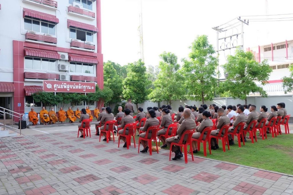 วันที่ (1 ก.ค.67) เวลา 07.45 น. พล.ต.ต.หญิง ธิติมา ธรรเมศรานนท์ ผบก.ศพฐ.3 มอบหมายให้ พ.ต.อ.หญิง ชมพูนุท ไสยโสภณ นวท.(สบ 5) ศพฐ.3 และ พ.ต.อ.เทอดไทย สุขไทย รอง ผบก.ศพฐ.3 พร้อมด้วยข้าราชการตำรวจในสังกัด ศพฐ.3 (ส่วนกลาง) ร่วมพิธีทำบุญตักบาตรข้าวสารอาหารแห้ง และรับฟังพระธรรมเทศนารับพร กรวดน้ำอุทิศส่วนกุศล เนื่องในโอกาส วันคล้ายวันสถาปนาสำนักงานพิสูจน์หลักฐานตำรวจ ประจำปี พ.ศ.2567 ณ หน้าอาคาร ศพฐ.3