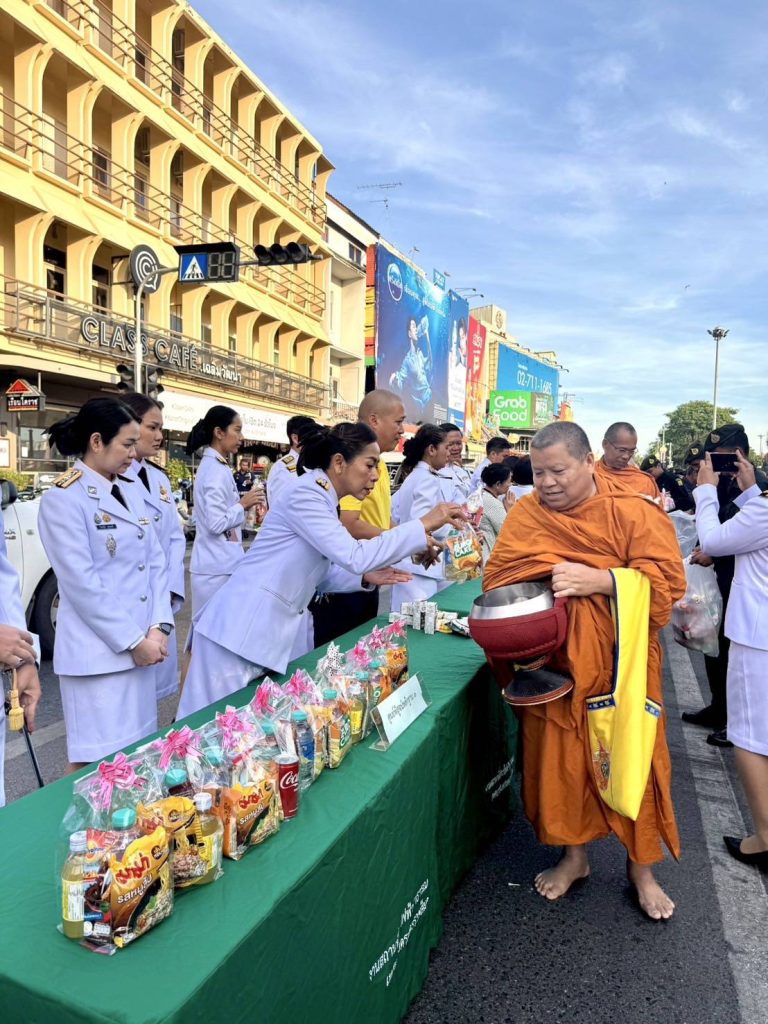 วันที่ ๕ ธันวาคม ๒๕๖๗ เวลา ๐๖.๐๐ น. พล.ต.ต.หญิง ธิติมา ธรรเมศรานนท์ ผบก.ศพฐ.๓ มอบหมายให้ พ.ต.อ.หญิง อารีรัตน์ ริมใหม่ นวท.(สบ ๔) กอป.ศพฐ.๓ นำข้าราชการตำรวจ ศพฐ.๓ จำนวน ๔ นาย เข้าร่วมพิธีเจริญพระพุทธมนต์ และทำบุญตักบาตร ถวายพระราชกุศล เนื่องในวันคล้ายวันพระบรมราชสมภพพระบาทสมเด็จพระบรมชนกาธิเบศรมหาภูมิพล อดุลยเดชมหาราช บรมนาถบพิตร วันชาติ และวันพ่อแห่งชาติ ณ บริเวณลานอนุสาวรีย์ ท้าวสุรนารี