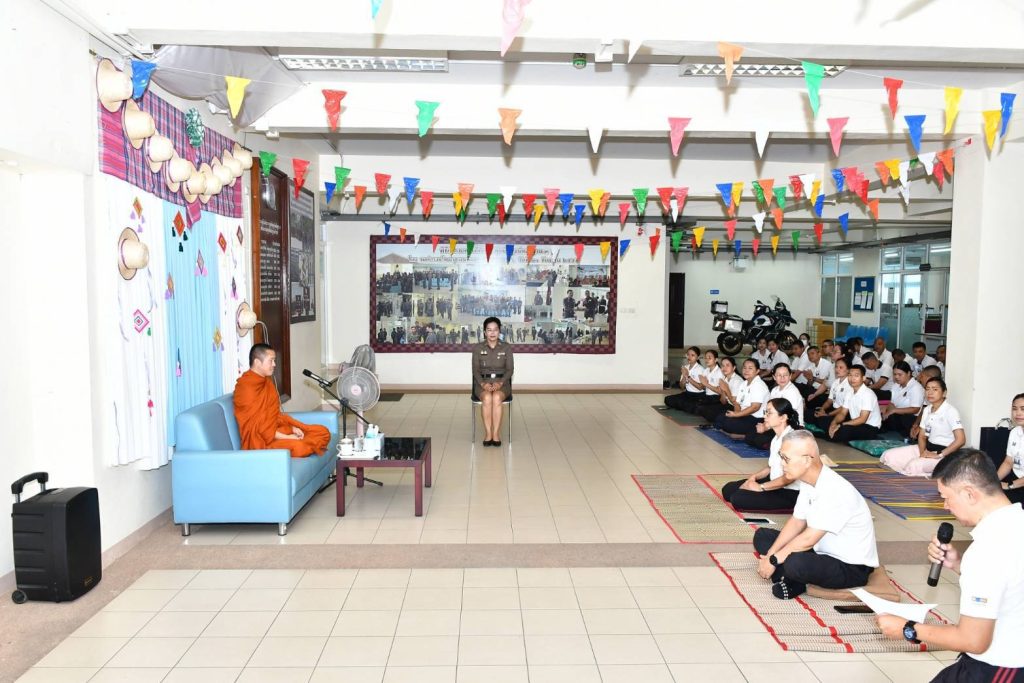 โดยได้นิมนต์ พระคุณเจ้า พระศรีธรรมวงศาจารย์ (ไพโรจน์ ฐิตโชโต ป.ธ.9) เจ้าคณะอำเภอเมืองนครราชสีมา (ธรรมยุต) เจ้าอาวาสวัดป่าศรัทธารวม ต.หัวทะเล อ.เมืองนครราชสีมา จว.นครราชสีมา มาบรรยายหลักคำสอนธรรมะกับการปฏิบัติงานในหน้าที่ และนั่งสมาธิ ณ บริเวณลานชั้น 1 ศพฐ.3