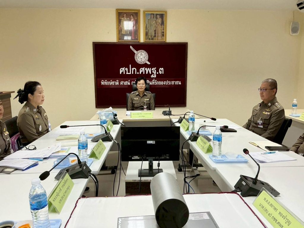 วันที่ ( 8 ก.ย.68) เวลา 13.30 น. พล.ต.ต.หญิง ธิติมา ธรรเมศรานนท์ ผบก.ศพฐ.3 พร้อมด้วย นวท (สบ 5) ศพฐ.3, ผกก.ฝอ.ศพฐ 3 และ หน.กลุ่มงานในสังกัด เข้าร่วมประชุมบริหาร ศพฐ.3 ครั้งที่ 4/2568