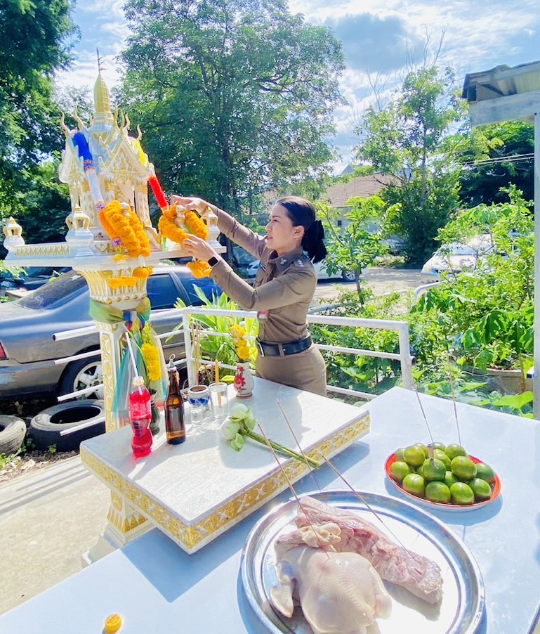 พ.ต.อ.หญิง วรินทรทิพย์ กมลภูผจงภักดิ์ นวท.(สบ 4)บุรีรัมย์ นำข้าราชการตำรวจในสังกัด ทำพิธีไหว้ ศาลพระภูมิเจ้าที่ ในหน่วยงาน และมอบรางวัลให้แก่ข้าราชการตำรวจดีเด่นใน เดือน มิ.ย. 66 เนื่องในวันคล้ายวันสถาปนา สพฐ.ตร. ประจำปี 2566